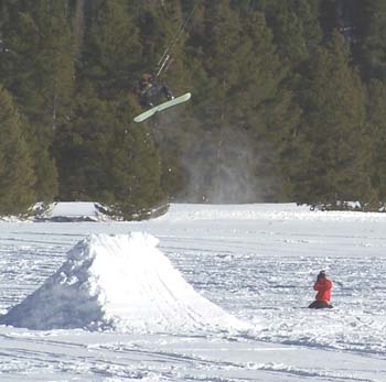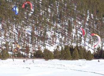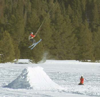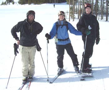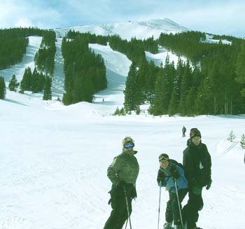 Our last day of skiing! And what a day it was. We got up to a partially cloudy sky, in our hotel called the Ptarmigan Best Western, which was about 50 yards from Lake Dillon. We were too lazy to walk down and check it out, also, we wanted to get going. Got free continental breakfast , checked out and we were on the road by 9:00. Got on the slopes a bit before 10 and the snow was phenomenal. We skied at Breckenridge today. They have a ton of blue/black runs, which we finally figured out must mean easy skiing with moguls on the sides. Can’t believe I felt fine enough to actually ski the bumps with Billy. Wonderful bumps. No ice, AJ. Great cruising runs. We did a ton of runs till 12:00 and then met Jenny Weiss and her fiancé, Eric. Off we went, and found some more great runs. Jenny hasn’t been on skis in two years. She did great. Eric is a really nice guy. (He better be, since he’s marrying our JennyGirl someday!) Saw some Colorado Blue Jays (they look grey to me) and Jenny informed us that she likes MaggggPiesssss. (Say it slowly and that what it sounded like. I think the high altitude was getting to her). Found a couple black runs and then wide open fast cruising again. Before we knew it, it was time to go. Took us forever to get out of town, then had to take pictures of some Para-skiing guys. Wow. Does that ever look like fun. Billy says he’s going to try it. I’m typing the first part of this in the car on the way to my sister Carol’s house. We had planned on staying in Denver (with her coming for dinner), but she didn’t feel well yesterday so we’re going there and will spend the night and then I have to leave and head out on the rest of my trip. Just found out this morning that it’s 85 degrees in Los Angeles today. Santa Ana winds. Hope they last for a few days at least while I’m there. How great would that be? Skiing one day and at the beach the next day. (On my birthday, no less). So, my take on this trip, so far is this: Extraordinarily Great! An Awesome adventure! May have to do this trip again in a few years. Maybe we’ll be even better at setting up our website, gosh, maybe we’ll make this into some kind of job. The brain is clearing out a bit, and the thoughts of what to do with the rest of my life are coming fast and furiously. (Of course, because of my age, I should be writing them all down because I keep forgetting them all). I hope a couple of days sitting on the beach in Del Mar will clear it out even more and I should be quite ready to rock and roll when I get back.